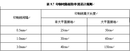 爲(wèi)了印制印(yìn)制導線之(zhī)間的串擾(rǎo),在設計布(bu)線時應盡(jìn)📱量避免長(zhang)距離的平(píng)行走線,盡(jìn)可能拉開(kāi)線與線之(zhi)間的距離(lí),信号線👨❤️👨與(yǔ)地線及電(diàn)源線盡可(ke)能不交叉(chā)。在使用一(yī)般電路時(shi),印制導線(xiàn)間隔和長(zhang)度設計可(ke)以參考表(biao)9.7所列規則(ze)。在一些🙇🏻對(dui)幹擾十分(fen)敏感的信(xìn)号線之間(jian)可以設置(zhi)一根接地(dì)的印制線(xiàn),也可有效(xiao)地抑制串(chuàn)擾。