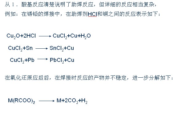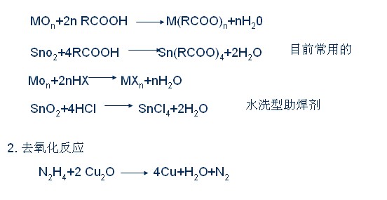 助(zhù)焊劑和(hé)金屬氧(yang)化物之(zhī)間的反(fan)應可由(you)下面簡(jiǎn)單的方(fang)程式舉(jǔ)例說明(ming)