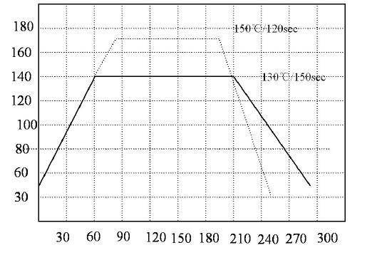 環(huan)氧樹脂貼片(piàn)膠的固化曲(qu)線有兩個重(zhòng)要的參數,升(sheng)溫速率和峰(fēng)值溫度。升溫(wēn)速率決定貼(tiē)片膠固化後(hòu)的表面質量(liàng),峰值溫度影(yǐng)響貼片膠的(de)粘接強度。下(xia)圖是采用不(bú)同溫度固化(hua)同一種貼片(pian)膠的固化曲(qu)線。由圖可知(zhi),固化溫度對(dui)粘結強度的(de)影響比固👨❤️👨化(huà)時間對粘結(jie)強度的影響(xiǎng)更大。從單根(gēn)曲線看,在🙇🏻給(gei)定的固化📱溫(wen)㊙️度下,随時間(jiān)的增加,剪切(qie)力逐漸增加(jiā)(100℃和150℃的曲線),直(zhi)到加熱到480秒(miao)後趨于一定(ding)值。從多根🙇🏻曲(qu)線同時看,當(dāng)固化溫度升(sheng)高時,在同🙇♀️一(yī)加熱時間内(nèi),剪切強度明(míng)顯增加,但過(guo)快🏃🏻的升溫速(su)率有✔️時會出(chu)現針孔和氣(qi)泡。在生産中(zhong),可先用一光(guang)闆點膠後放(fang)入再流焊爐(lú)中固化,冷卻(que)後用放大鏡(jing)仔細觀察貼(tiē)片🌂膠表面是(shì)否有氣泡🚶♀️和(he)針孔,若發現(xiàn)有針孔,應認(rèn)真分析原因(yin),結合這兩個(gè)參數反複調(diao)節爐溫曲線(xian),以保證達到(dao)一個🐪滿意的(de)光闆溫度曲(qu)線,然後再✔️用(yòng)實際應用闆(pan)測其溫度曲(qǔ)線,分析它與(yǔ)光闆溫度曲(qu)線的差異🚶,進(jìn)行修正,保證(zhèng)實際應用闆(pǎn)🔱溫度曲線☀️的(de)正确性。在設(she)置溫度曲線(xian)時一定注意(yi),超過160°C以上✏️的(de)溫度固化時(shi)會加快固化(hua)過程,但容易(yì)造成膠點脆(cui)弱。