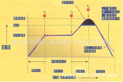 圖二、理(li)論上理想的(de)回流曲線由(yóu)四個區組成(cheng),前面三個⭕區(qū)加熱、最後一(yī)個區冷卻)
