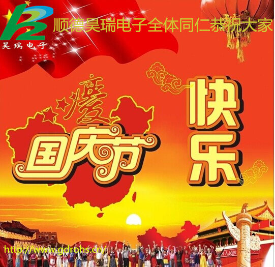 剛(gang)剛送走了中秋的(de)笑臉,又迎來了國(guo)慶的喜悅!值此十(shi)👉一佳節之際,昊瑞(rui)電子全體同仁向(xiang)您緻以最真誠的(de)祝福,祝您和您的(de)📧家人節日愉快!願(yuan)您們在這雙重喜(xǐ)慶的包圍下永遠(yuǎn)幸福、快樂!!